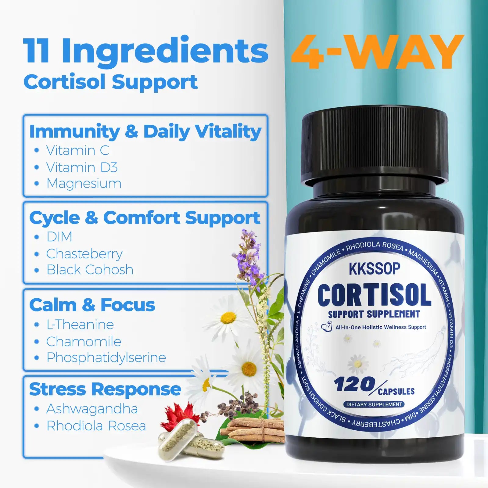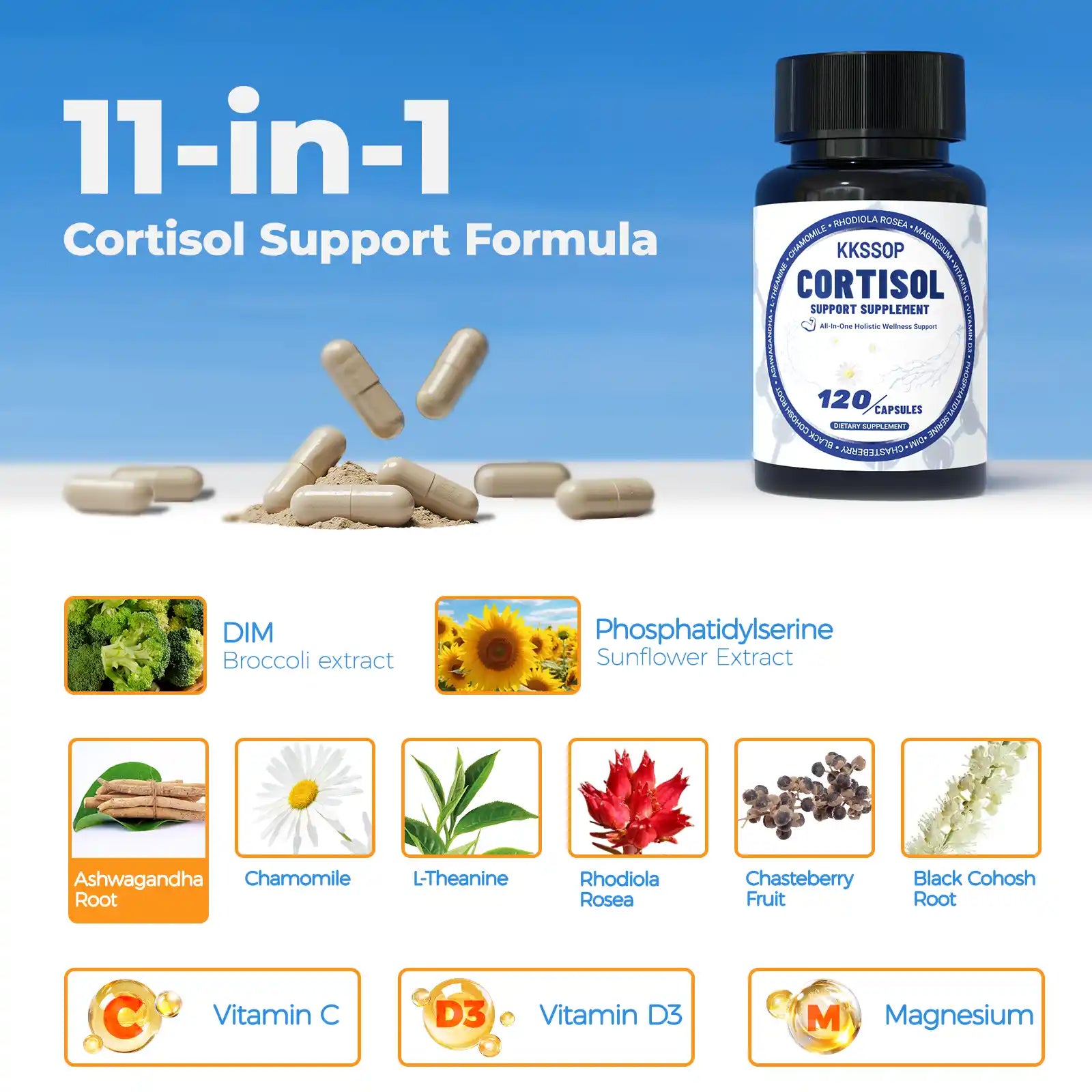 KKSSOP 11-in-1 Cortisol Supplement for Women and Men,Dietary supplements for human consumption,120 Capsules