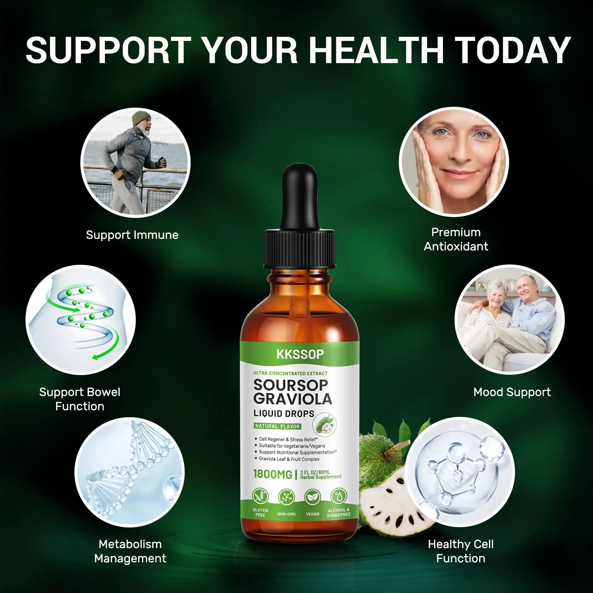 KKSSOP Graviola Soursop Leaf Extract Liquid - Food supplements | Non-GMO, Sugar & Gluten Free, Original Flavor, 2 Fl Oz